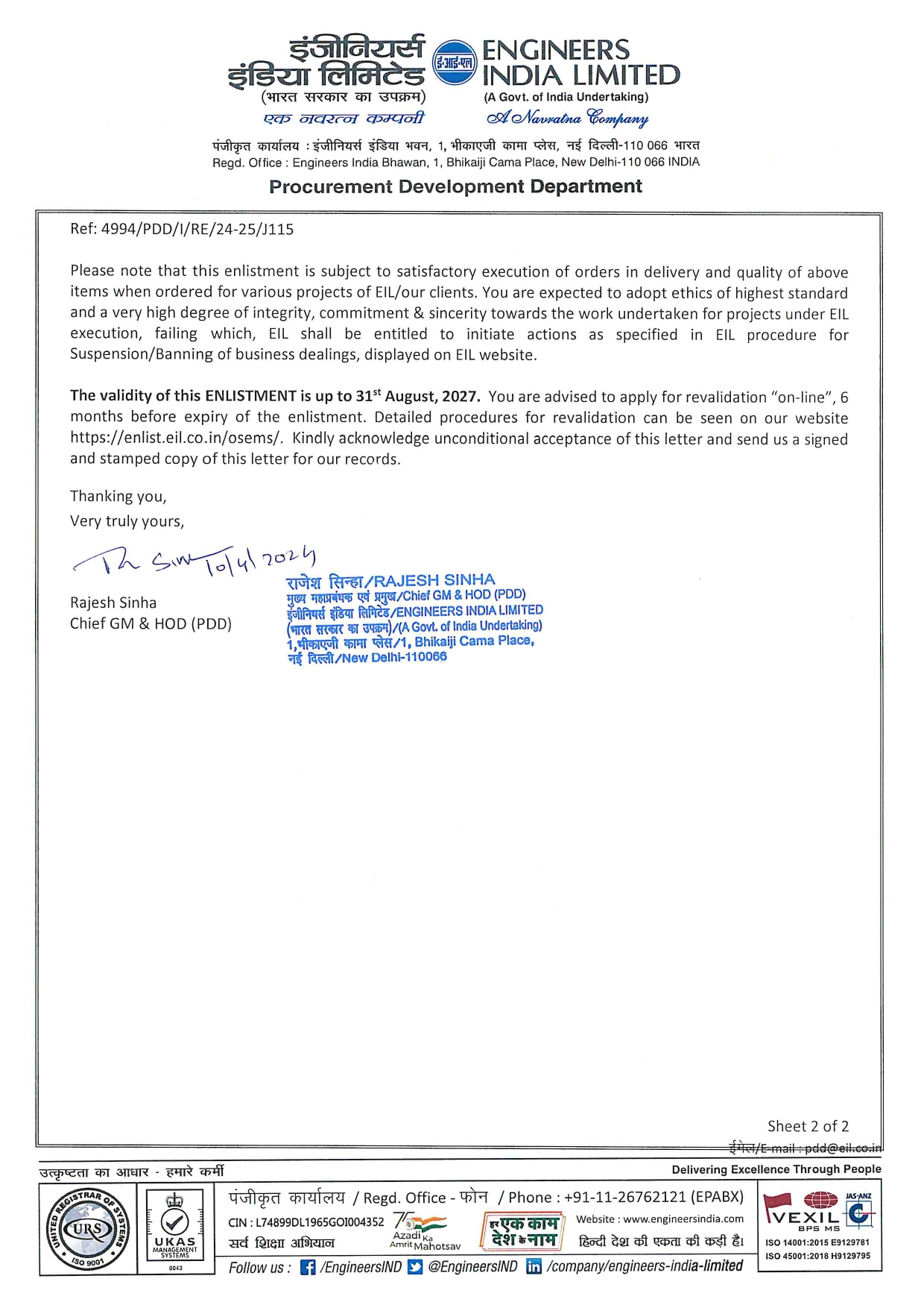 Jindal India ensures compliance, reliability, and confidence in every product
