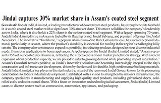 Jindal India’s diversified product portfolio includes galvanised and colour-coated steel, API pipes, ERW round and structural section pipes, crash barriers, and aluminium foil.